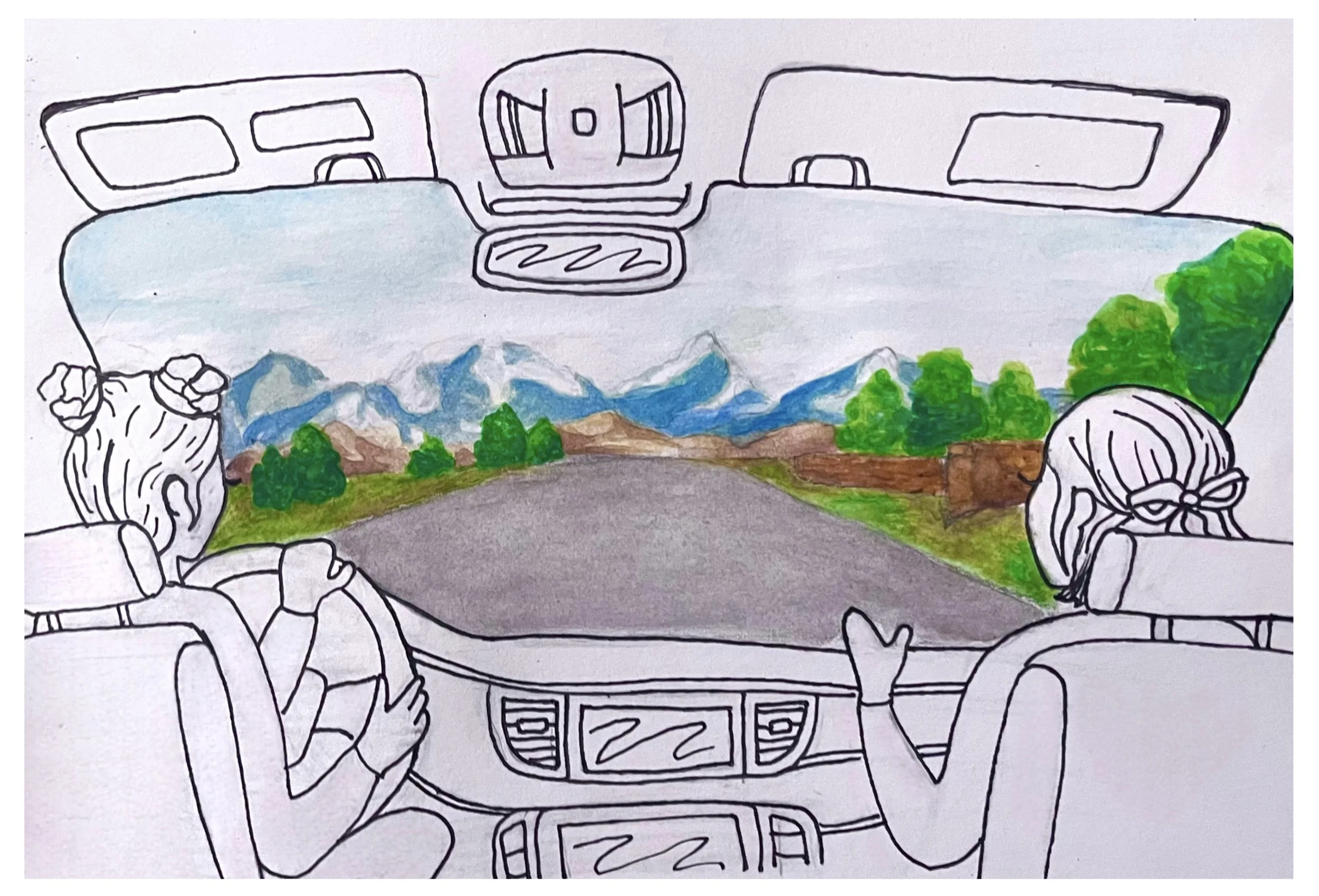 Illustration made using graphite, pen, alcohol ink, and watercolor