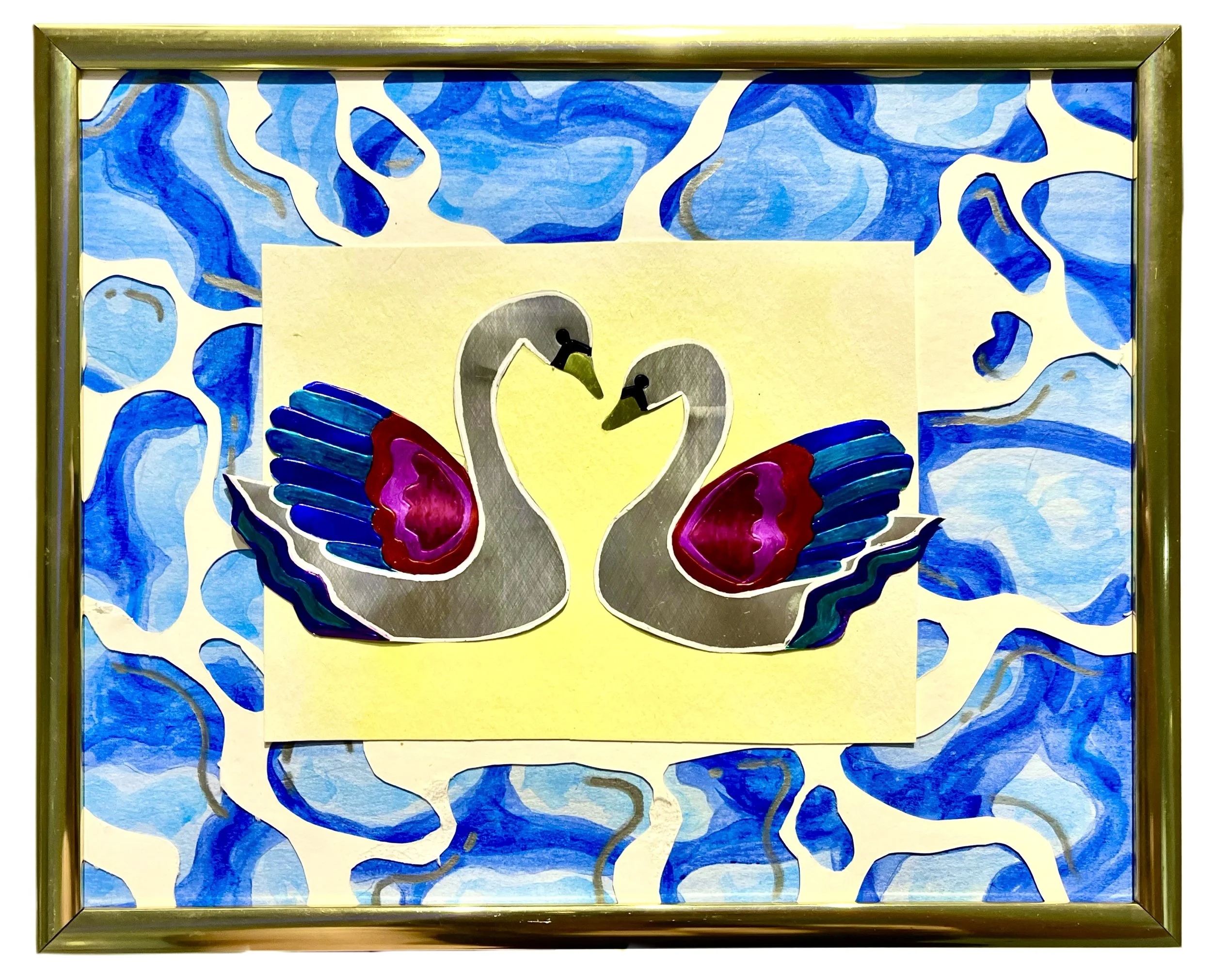 Medium: Original mixed media piece with recycled tin, oil pastels and repurposed frames.
